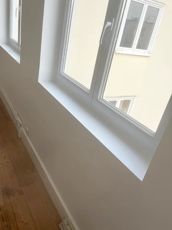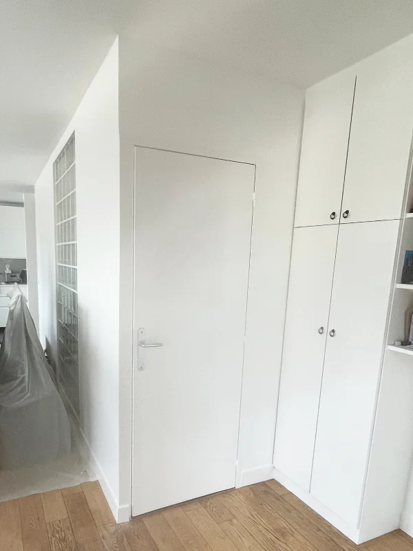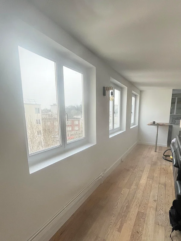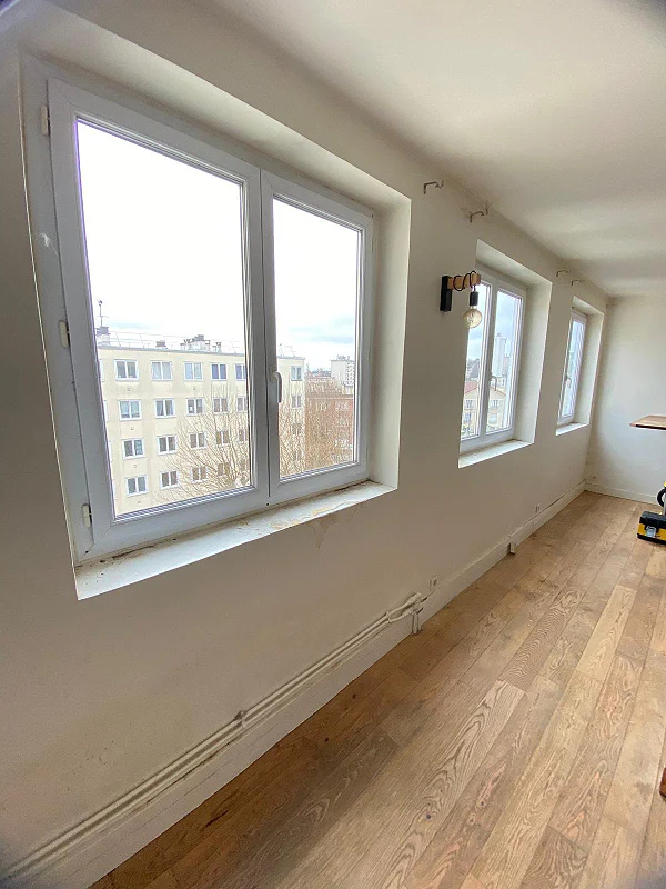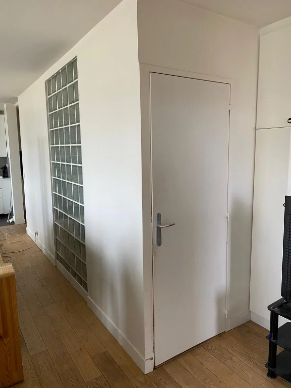 Nous avons réalisé une rénovation complète : reprise des murs et plafonds, remise en peinture des tuyauteries et boiseries, ponçage et vitrification du parquet d’une chambre, réfection des joints des fenêtres, remplacement de certaines plinthes et installation d’un nouveau pare-douche dans la salle de bain. L’appartement a retrouvé un aspect propre, sain et prêt à être présenté à la vente.